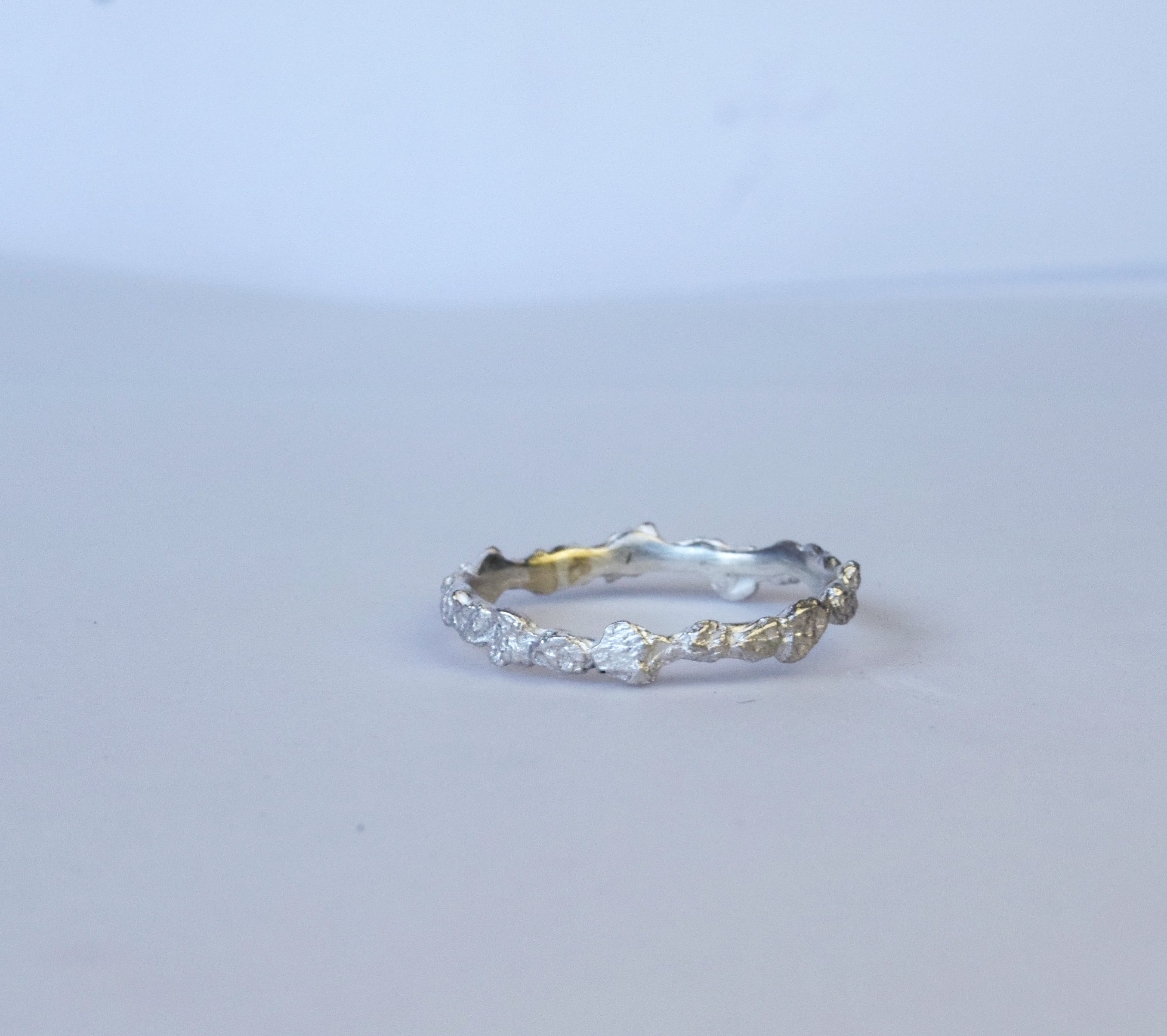 モロッコの老木の樹皮のカケラを繋ぎ合わせて、指輪にしました。