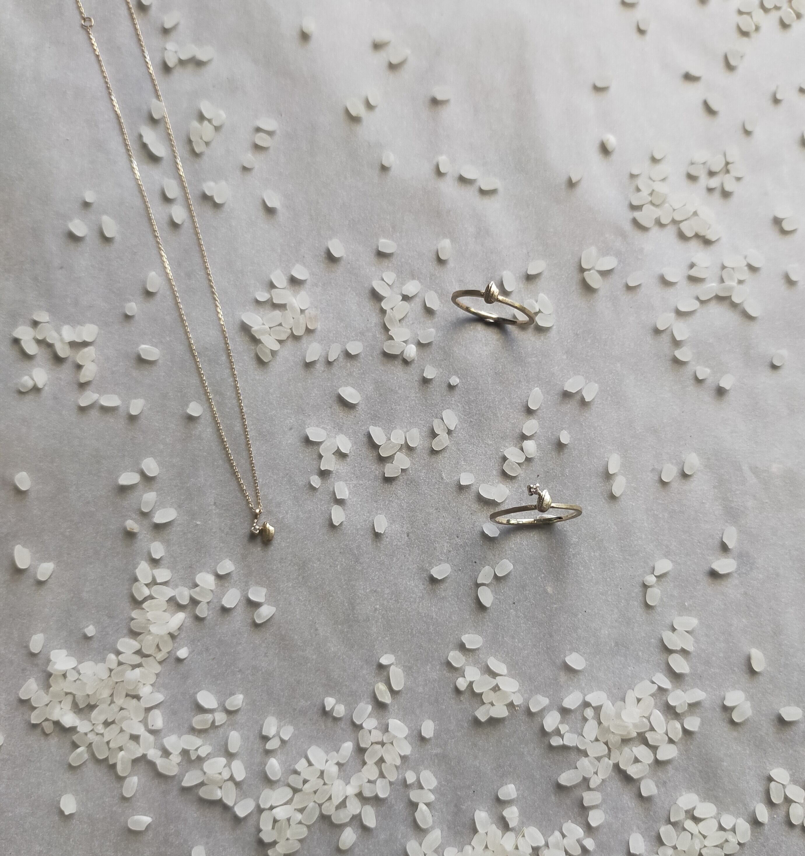 近所で無農薬で作られたお米を型どりジュエリーにしました。