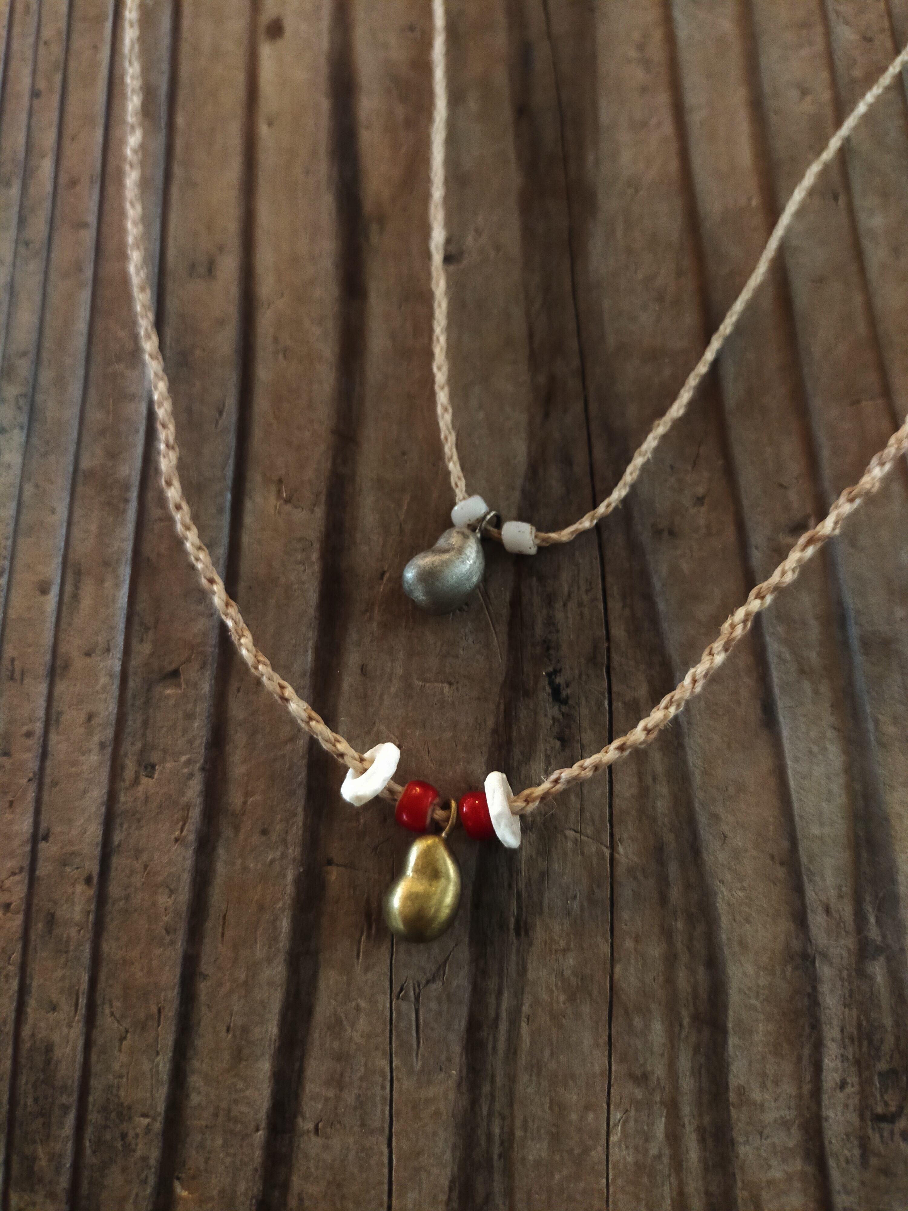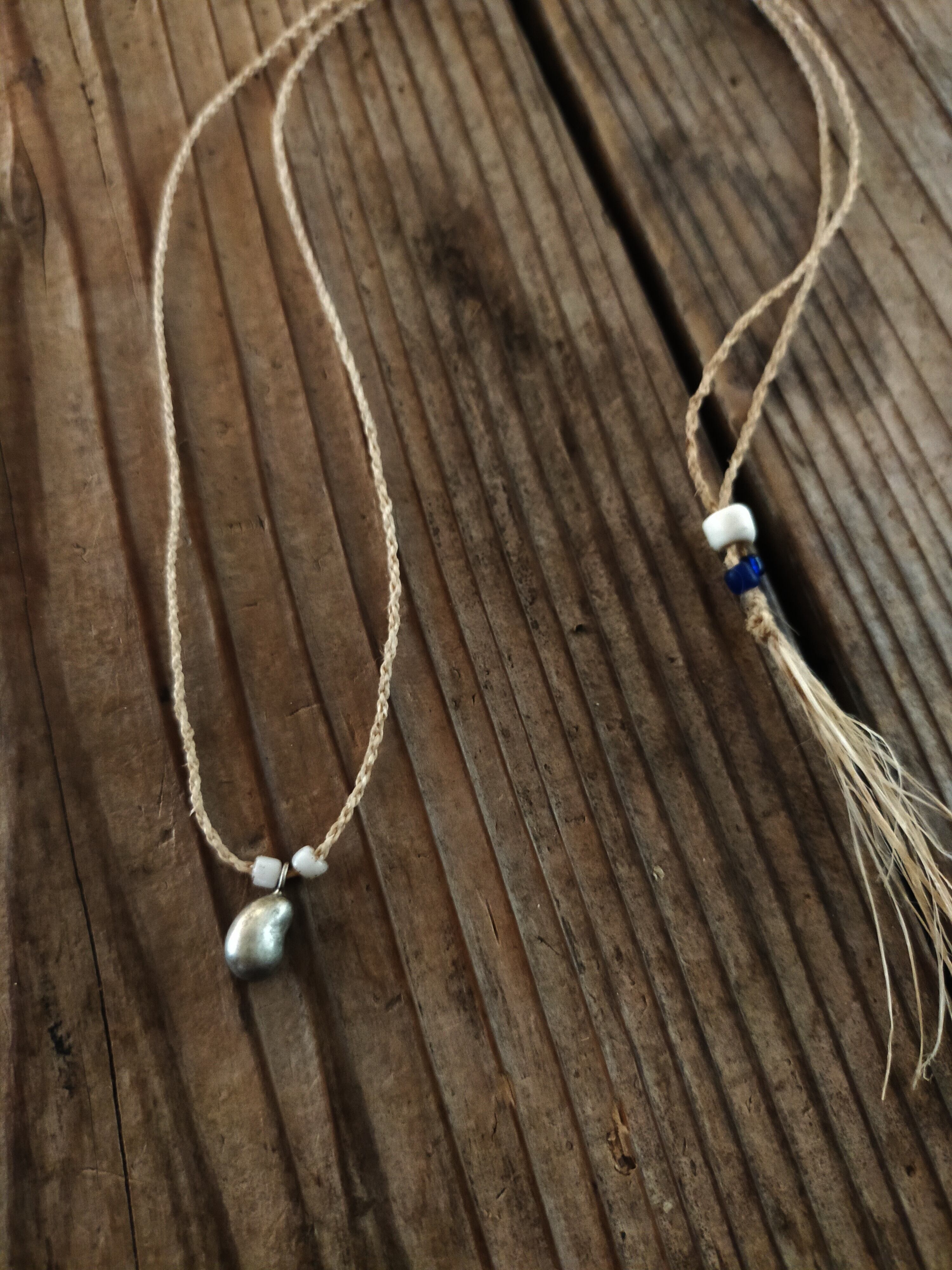 ●muu首飾り(70cm)―苧麻、アフリカのガチョウの玉子の殻、アンティークビーズ